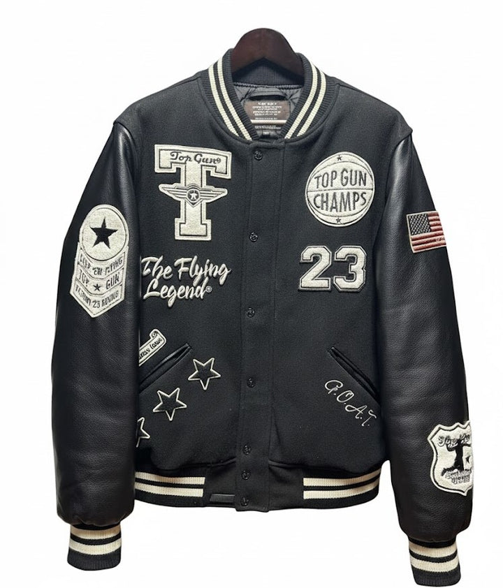 Whether you’re heading to class, the stadium, or out with friends, this Top Gun Champs varsity jacket brings effortless style to any look — a must-have staple for baseball, varsity, and streetwear lovers.