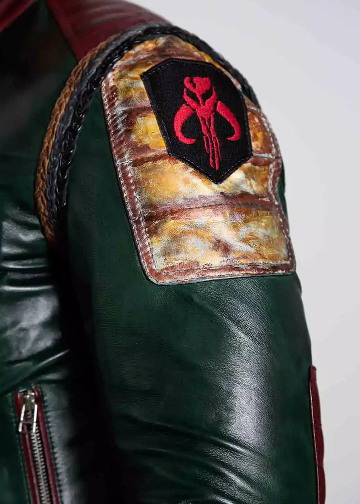 Step into the galaxy with confidence wearing this Warriors of Mandalore Star Wars Cosplay Leather Jacket for Men. Inspired by the legendary Mandalorian fighters, this jacket features the iconic olive-green base with red and gold detailing that mirrors the armor of the warrior clans.